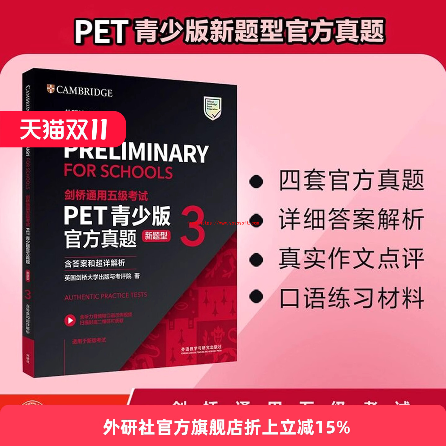 剑桥通用五级考试PET青少版官方真题(新题型)3(含答案和超详解析)