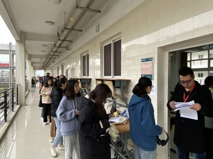 上午8时,考生陆陆续续到达考场,面对即将到来的检验跃跃欲试、蓄势待发。核对信息、证件查验、对号入座、考卷启封、试卷发放……井然有序的考场透露着严肃的考试气氛。