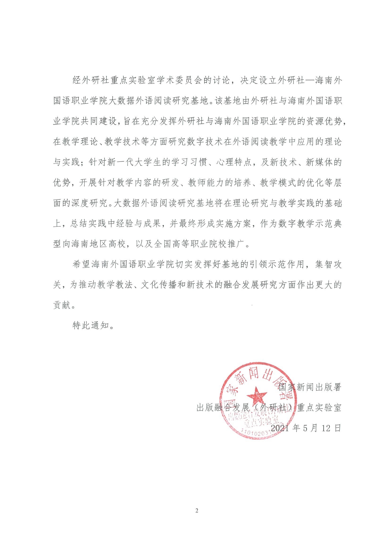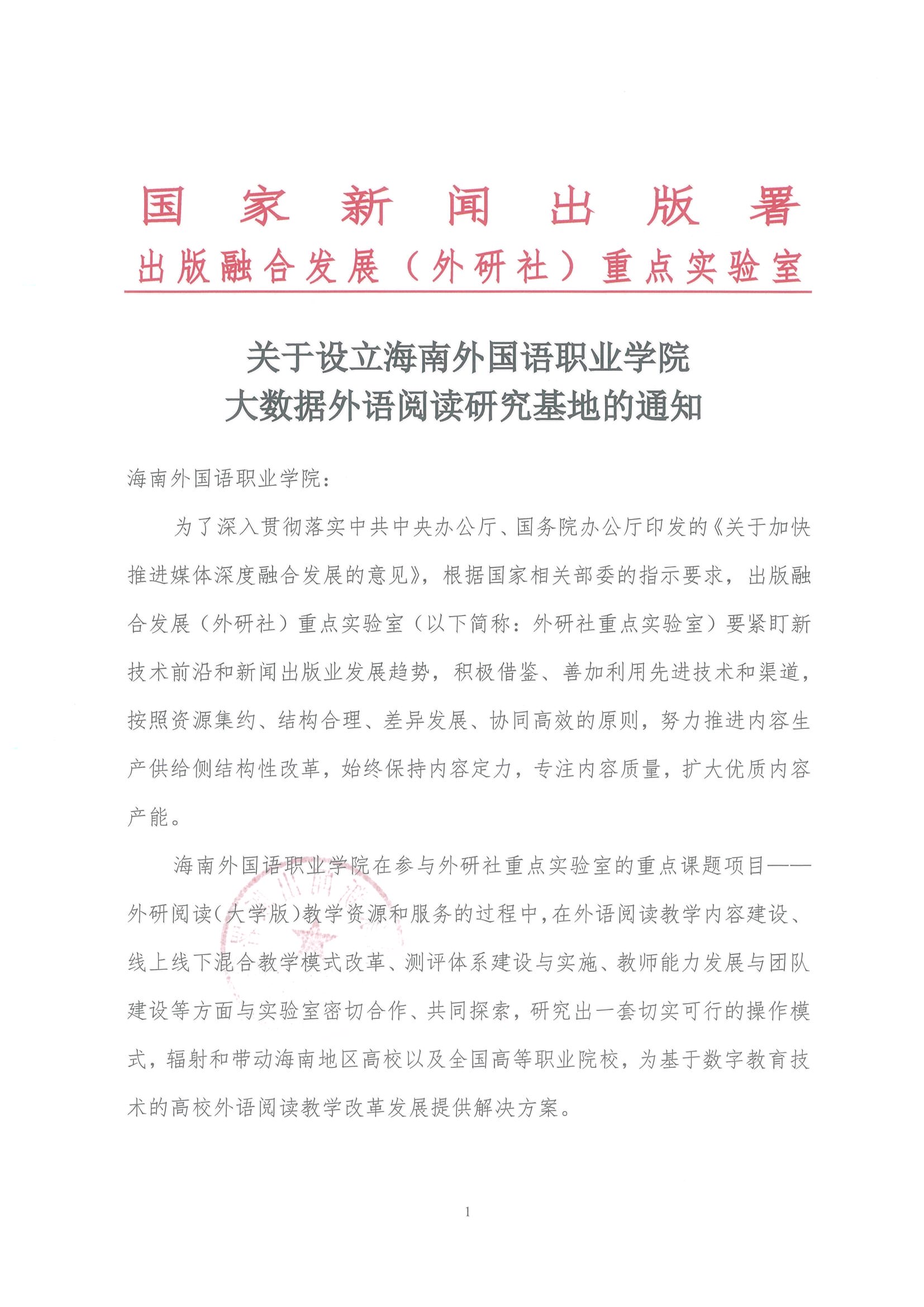 关于设立海南外国语职业学院大数据外语阅读研究基地的通知