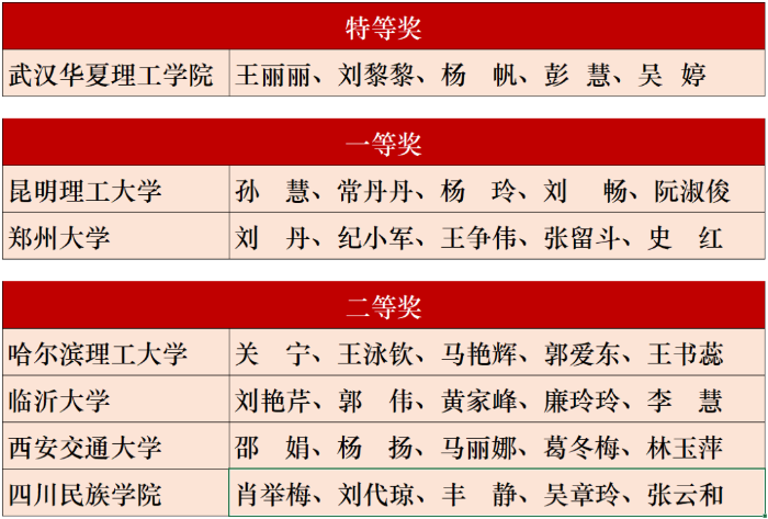 获奖教师团队名单