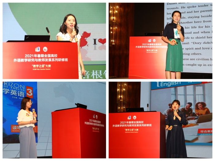 2021年外研社“教学之星”大赛全国半决赛(第3场)于本期研修班举办。经过8组参赛教师团队激烈角逐,成都中医药大学黄婧老师与康静雯老师凭借明确的教学目标、特色鲜明的教材应用方式、重点突出的教学设计蟾宫折桂,代表团队成功晋级全国总决赛。