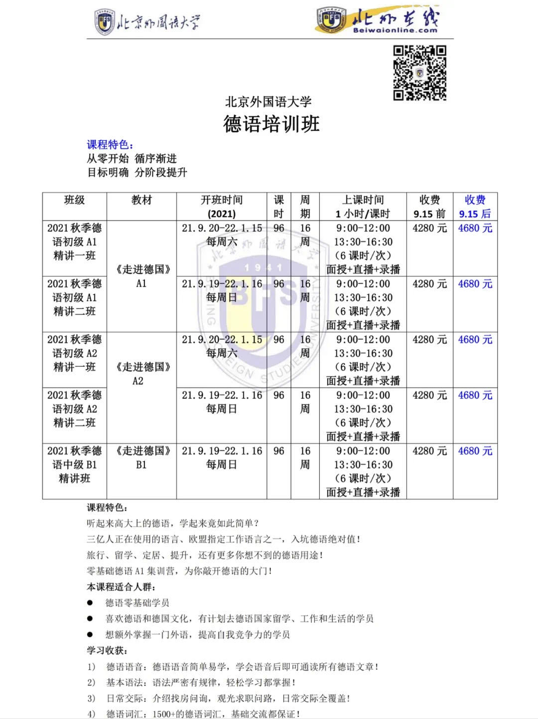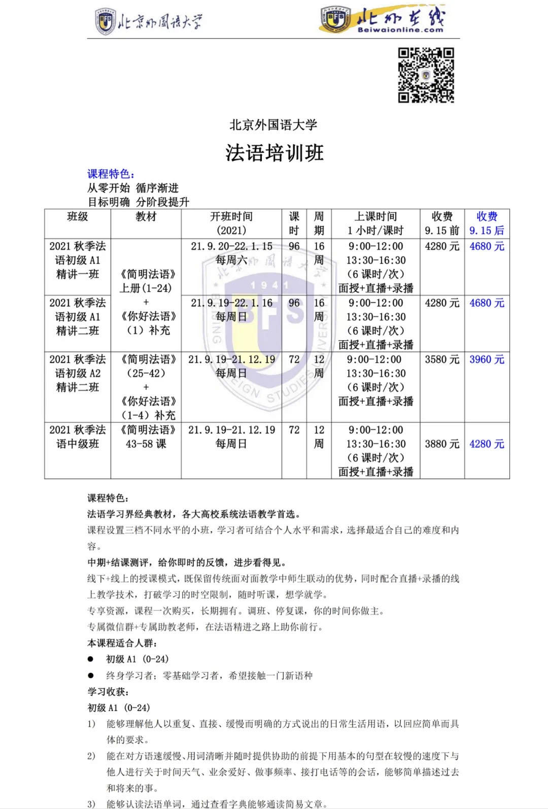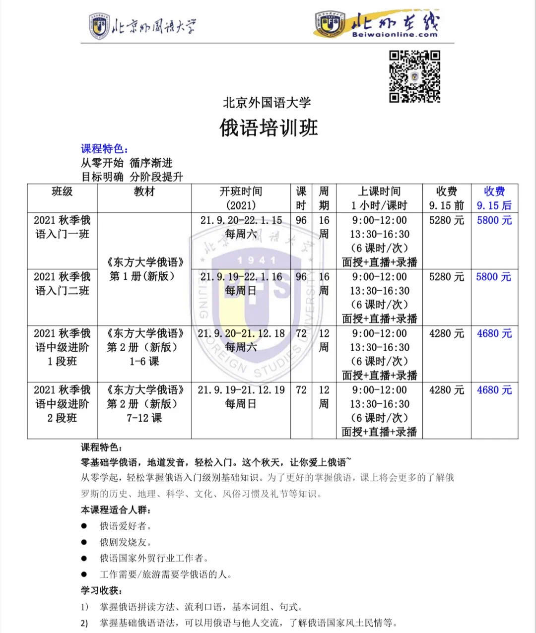 2、公众微信号报名:发送 姓名+电话+邮箱+报名班型 至公众微信号“北外在线多语种培训” (缴费成功后请主动联系)