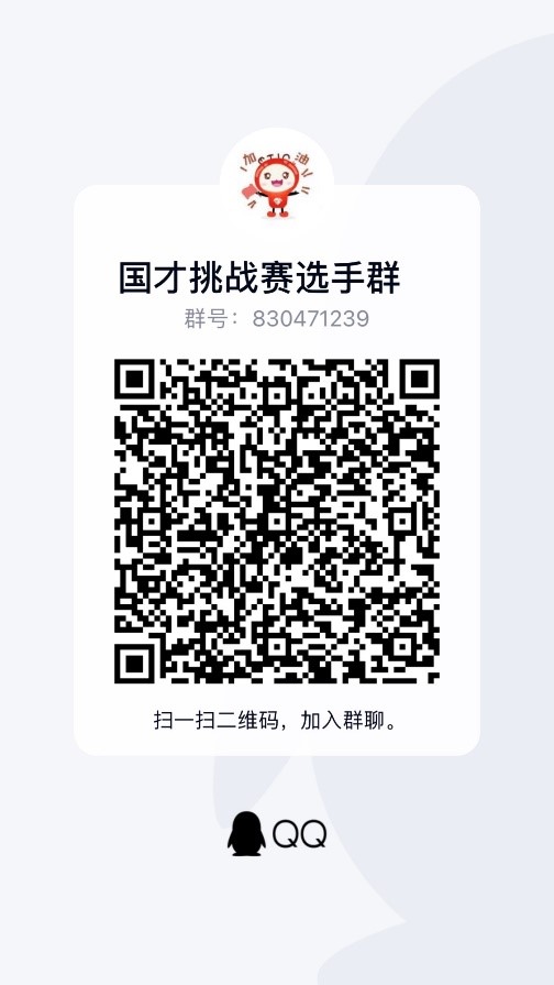 1)扫描下方二维码,加入“国才挑战赛选手群”,填写报名表