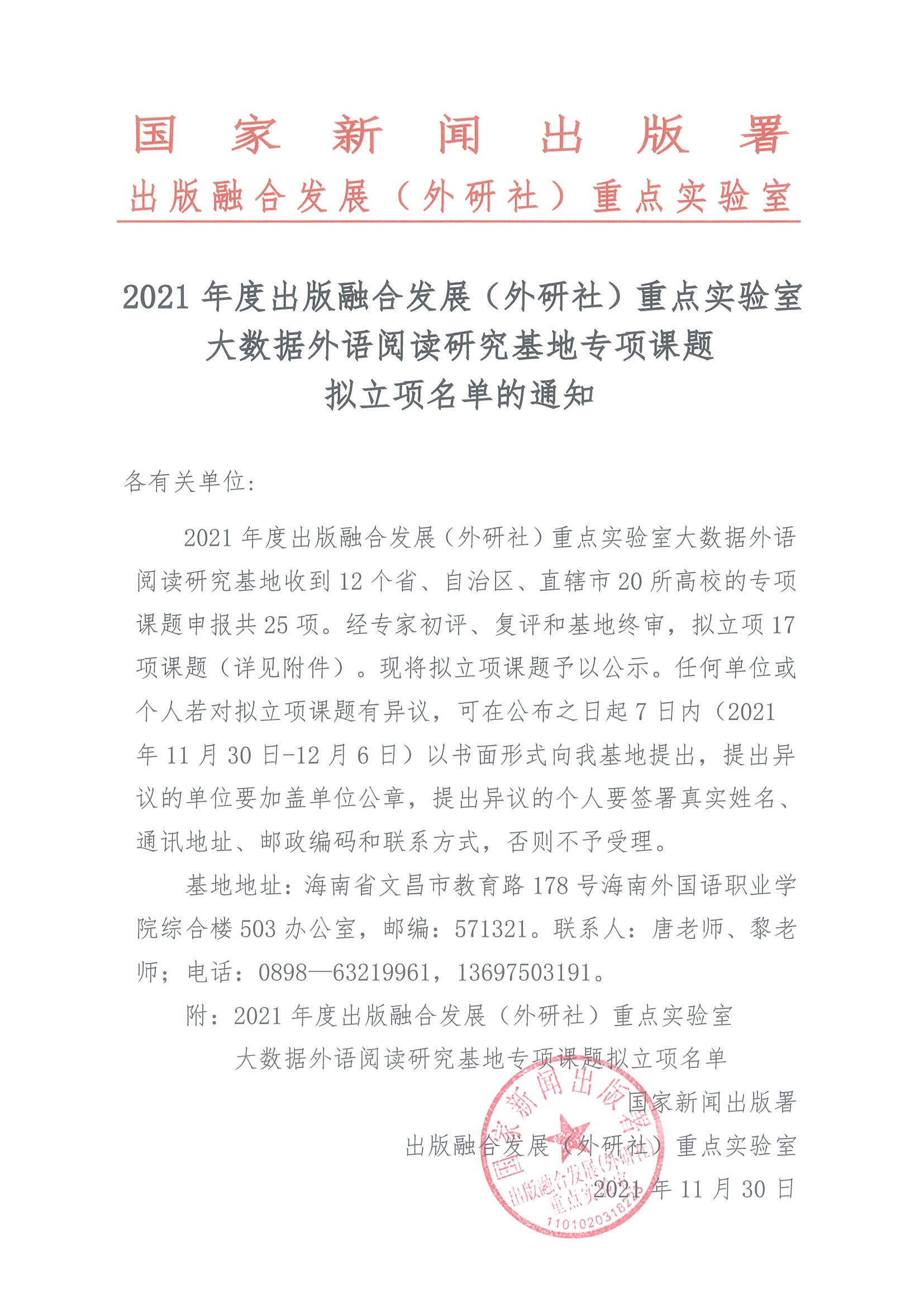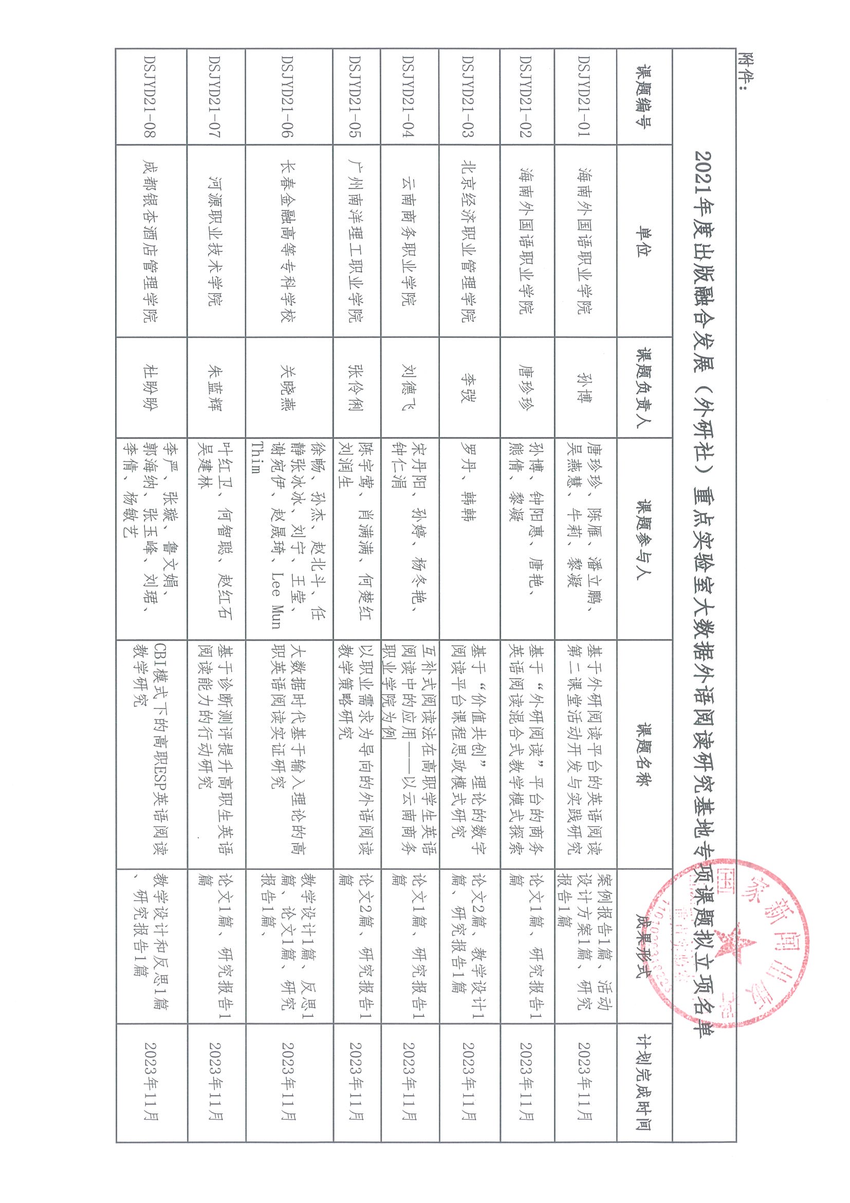 2021年度出版融合发展(外研社)重点实验室大数据外语阅读研究基地专项课题拟立项名单的公示