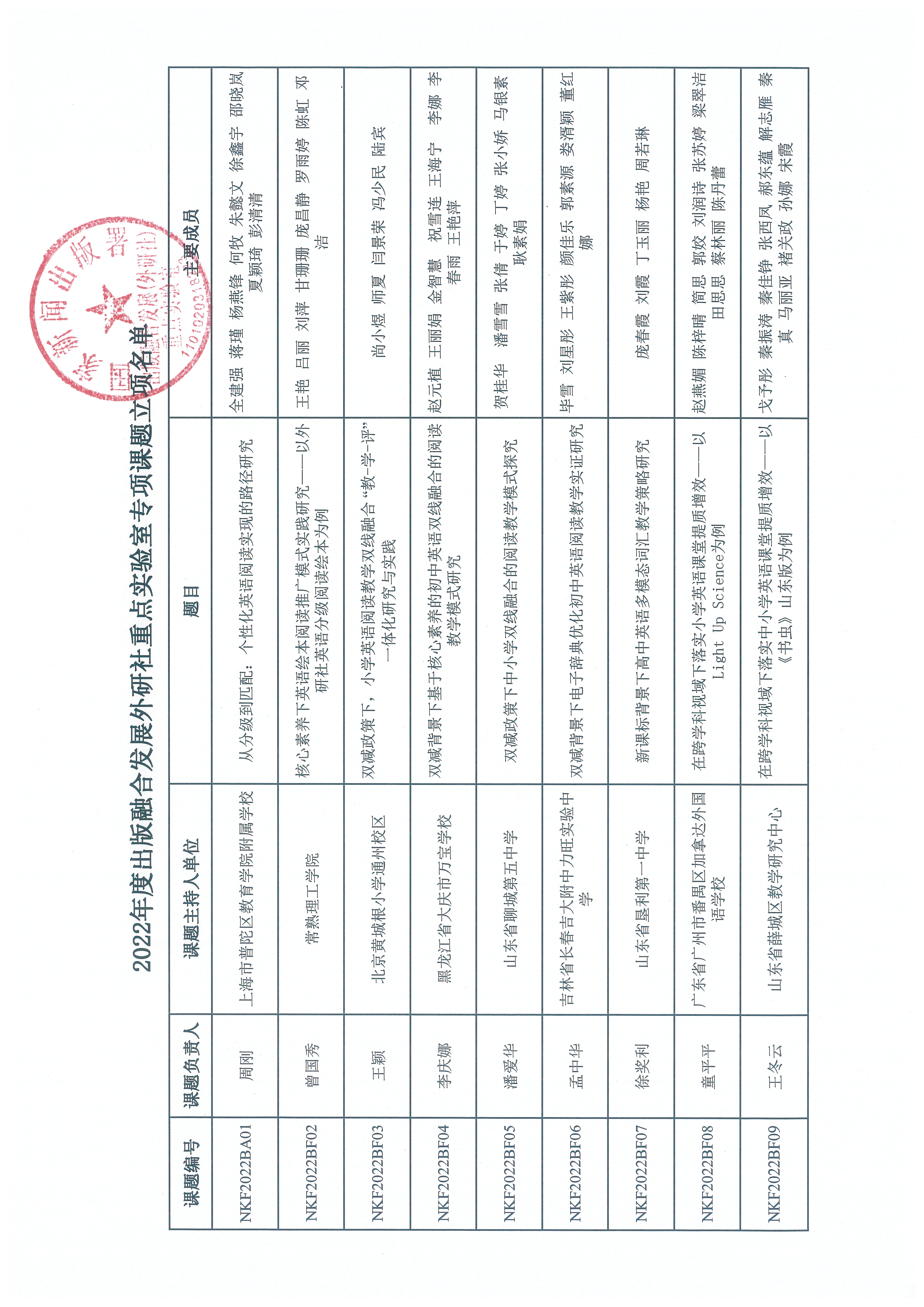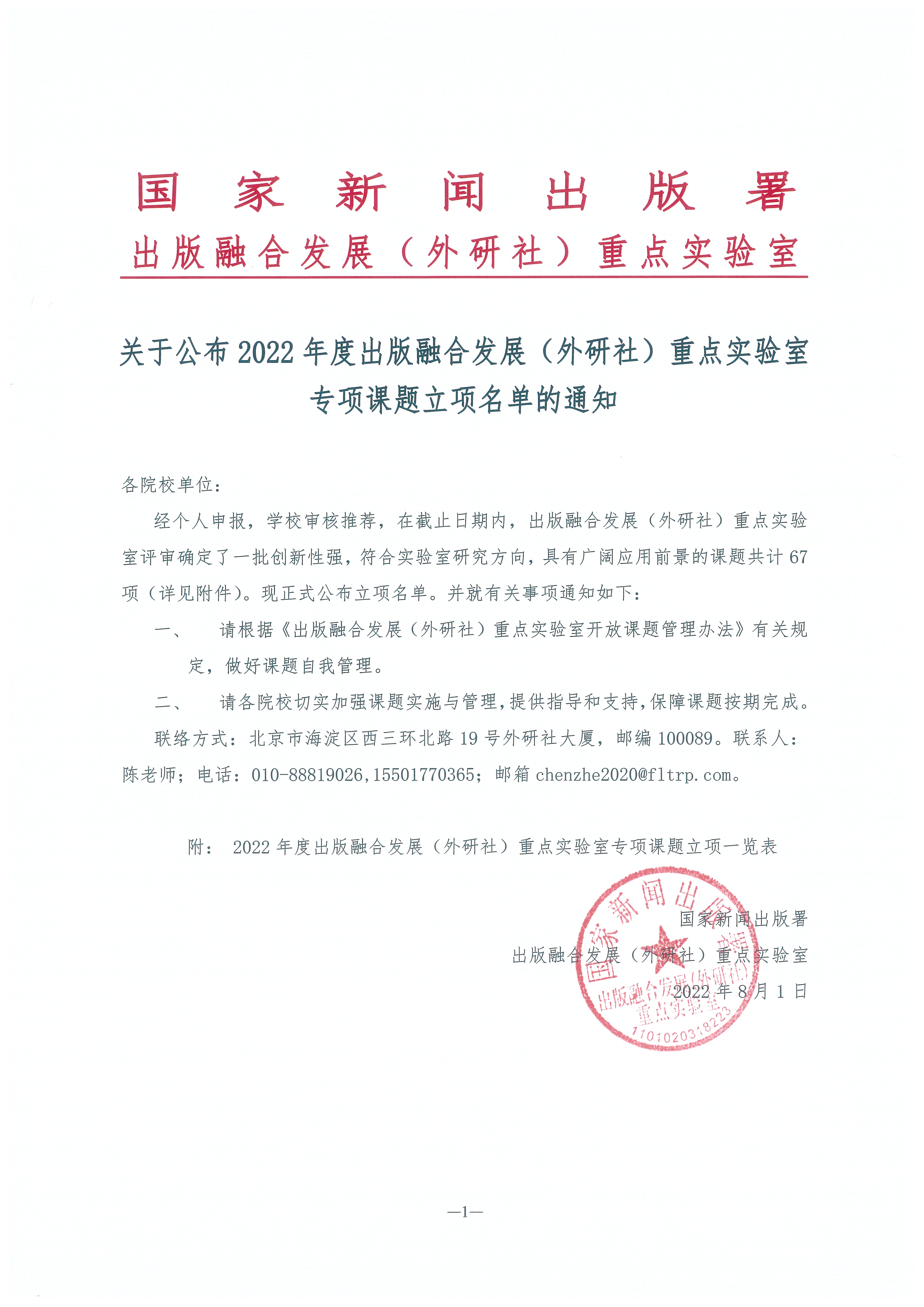 关于公布2022年度出版融合发展(外研社)重点实验室专项课题立项名单的通知