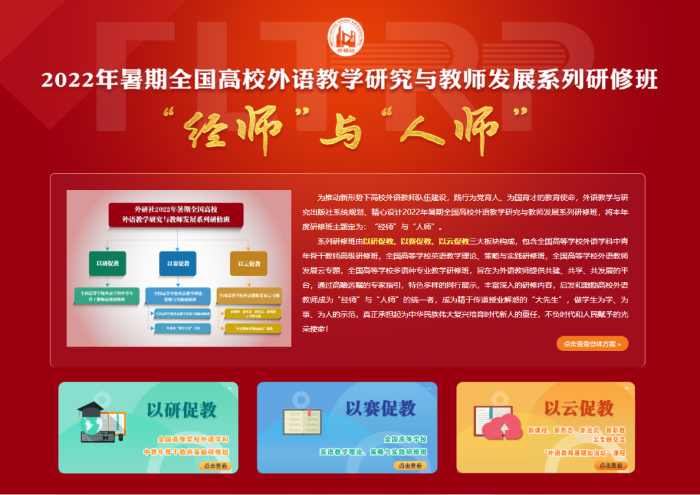 善为“经师”,更为“人师”。2022年7-8月,外研社暑期全国高校外语教学研究与教师发展研修班举办,全国高等院校外语教育专家、学者及一线教师汇聚云端,共探外语教育发展大势,共享外语教学育人成果。