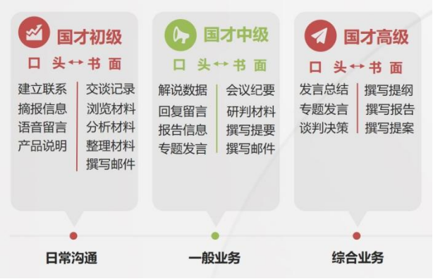国才考试以“立足中国、沟通世界、服务职场、推动教学”为设计理念,考试任务设置真实、典型的跨文化交流场景,还原外交外事、国际职场等各级各类国际传播场合,引导考生深入理解中国特色与中国实践。考试注重输入与输出有机统一,强调口头、书面产出,使考生在真实情境下运用英语解决问题、完成任务、达成目标,有效提升考生在未来国际职场中的外语应用能力和国际传播实践能力,从而促进考生全面综合发展。
