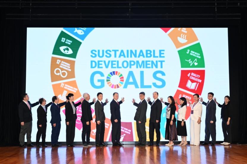 随后,贾文键校长、赵汝恒副校长等主承办及协办单位代表共同点亮象征可持续发展目标(SDGs)的大屏幕,标志着本次盛会正式启动。