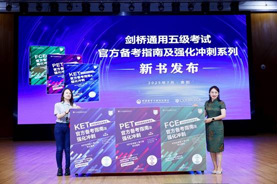 2025年7月23日,“剑桥通用五级考试官方备考指南及强化冲刺”系列新书发布会在第八届英语教学与测评学术研讨会上成功举办。外研社党委副书记陈媛媛和剑桥大学出版与考评院英语业务大中华区学习解决方案总监周岩共同为新书揭幕。来自全国的英语教学专家、教研员及一线教师通过线上、线下方式共同见证了这一重要时刻。