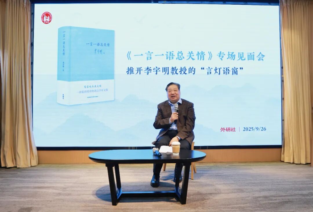 2025年9月26日,《一言一语总关情》专场读者见面会在北京外研书店以线上线下相结合的方式举行。本书作者、北京语言大学教授李宇明,外研社党委副书记、副董事长、总编辑刘捷与现场读者欢聚一堂,共同探寻“一言一语”背后的学术故事和真挚情谊。