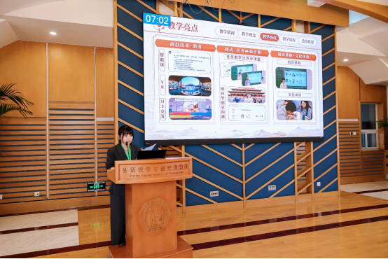 18支师生团队分别进行交流展示,呈现了一系列高质量的中文教学实践。各团队基于《理解当代中国》《用中文 学表达》《会通汉语》等教材,涵盖通用中文、专门用途中文、中国文化与国情等多种课程类型,融合产出导向法、表达驱动等教学理论,践行“以学生为中心、以文化为纽带、以实践促内化”“价值引领,数智向学,语文共生,知行合一”“技术赋能,文化传播”等多元教学理念,在教学设计上,围绕知识、文化、情感等目标,灵活运用DeepSeek等AI核心技术、即梦AI与Canva等内容创作工具,以及数字人、VR等互动呈现媒介,结合各类智慧教育平台,构建出兼具个性化与高效能的中文课堂。展示内容紧扣“教学聚能,智慧领航”主题,充分展现智能时代中文教学的新路径,给与会者留下了深刻的印象。