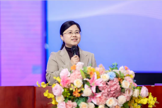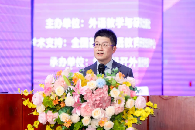 贺婧作开幕致辞。她首先向与会领导、专家及教师致以热烈欢迎,并对此次会议的主办方外研社致以感谢,感谢其为广大教师提供了学习与交流的平台,共探外语教育的前沿话题。她指出,经开外校用世界眼光办学,用国际视野育人,探索拔尖创新人才与优秀外语外事人才齐头并进的人才培养模式。她表示,经开外校愿以“厚德、新思、博见”的育人理念努力培养学生拥有爱国之心、仁者之德、精英之志、智者之见、健康之体,成为具有未来国际竞争力的世界公民。
