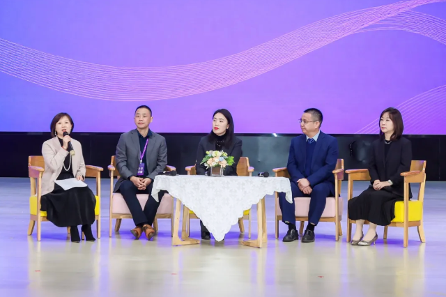 在校长论坛环节,苏州外国语学校兼苏城外国语学校校长陈杰、武汉外国语学校副校长郑敏、广东顺德德胜学校常务副校长李志军、北京新英才学校副校长张心一、外研社英语教育出版分社副社长蒲善娟围绕“数智时代外语特色学校创新发展与实践”这一主题各抒己见,分享了学校使用数字技术的经验和方法,并在构建数智化课程体系、提升教学效果等方面提供了创新思路。