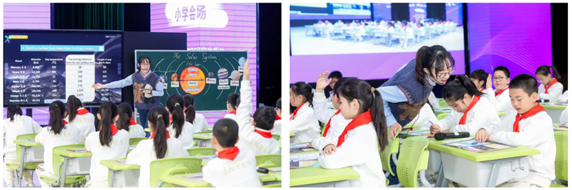 下午,会议下设小学、初中、高中分会场,众多基础教育领域知名专家、学者和一线教育工作者出席,通过课例展示、说课反思、互动点评等多种形式,进一步探讨外语特色学校在数智化课程建设、教学创新和文化融合等方面的实践经验和前瞻思考。