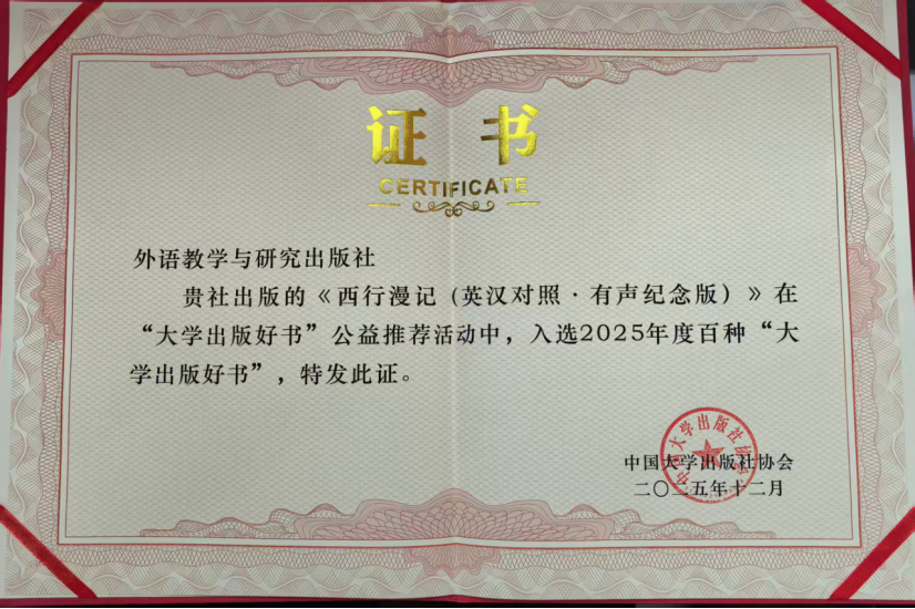 12月13日,中国大学出版社协会2025年年会在杭州召开。会议期间对外发布2025年度百种“大学出版好书”书目。外研社出版的《西行漫记(英汉对照・有声纪念版)》与《我们做对了什么——北京十一学校家长的陪伴与反思》分别入选主题出版和大众图书类年度好书。