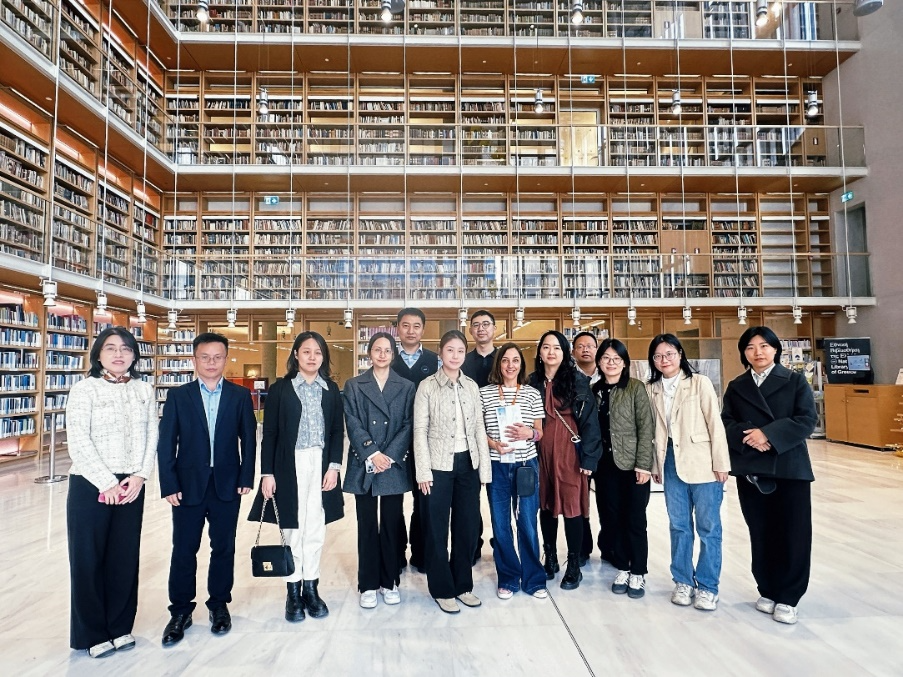 代表团还访问了希腊国家图书馆,图书馆工作人员介绍了国家图书馆的馆藏规模和社会服务功能,重点分享了近年来在数字化专区建设上的创新成果。双方一致认为,应充分利用数字技术打破时空限制,积极探索在数字资源交换、技术平台协作等方面的合作可能,共同打造数字化教育服务新生态,为两国学者的学术研究与思想交流提供坚实的资源支撑。