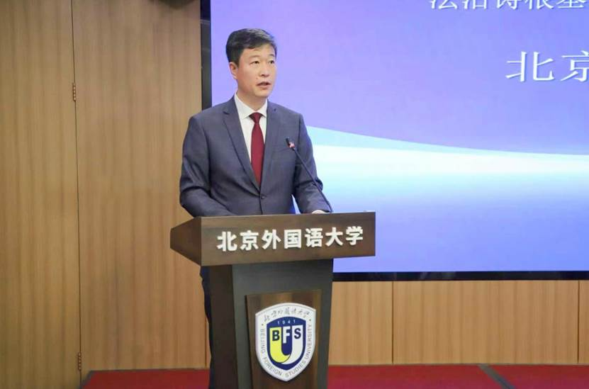 北京外国语大学党委书记李海对远道而来的香港师生表示热烈欢迎,并对教育部留学服务中心的信任与支持表示衷心感谢。他指出,青少年法治宣传教育是全面依法治国的长期基础性工作。北京外国语大学坚持服务国家战略,与教育部政策法规司合作共建了全国青少年法治教育中心,并成功举办了十届全国学生“学宪法 讲宪法”活动,为青少年提升法治素养、厚植爱国情怀搭建了广阔平台。本次宪法主题研学活动同样希望为香港学子提供一个认识祖国、了解文化、感悟法治精神的宝贵契机。李海书记勉励同学们珍惜机遇,在研学中做到学有所思、研有所悟、行有所获,系好人生第一粒“法治扣子”,增强家国情怀、公民意识和法治观念,努力成长为堪当民族复兴大任的时代新人,为保持香港繁荣稳定、助力国家现代化建设贡献智慧和力量!