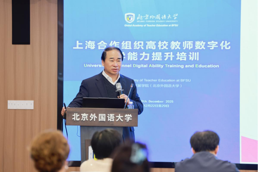 2025年12月23日,上海合作组织高校教师数字化教学能力提升专题培训在北京外国语大学顺利开班。本次培训由全球教师发展学院(北京外国语大学)、北京外国语大学教育学院主办,北京外国语大学教育培训中心、外语教学与研究出版社协办。