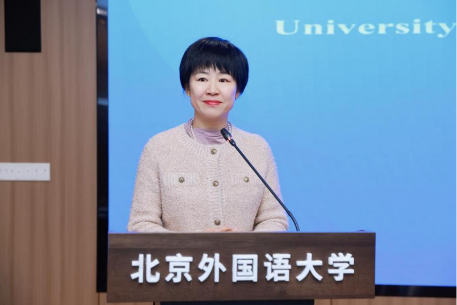 教育部教师工作司教师发展处相关负责同志作开班致辞。她指出,中国秉持“开放包容、互学互鉴”理念推动成立全球教师发展学院,旨在构建高层次对话平台、高质量研修基地与高效能合作网络,携手各国探索面向未来的教师发展新模式,提升教师数字素养、科学素养与人文素养,共促教育可持续发展。她强调,当前全球教育正处于数字化转型关键阶段,技术革新深刻重塑教学模式与人才培养路径,本次上海合作组织高校教师数字化教学能力提升培训恰逢其时,为成员国教师应对共同挑战、共享前沿智慧搭建了重要平台。同时,她高度肯定了北京外国语大学在全球教育变革中所展现的前瞻视野与担当精神。最后,她预祝本次培训圆满成功,期望学员们在此程收获知识、增进友谊,共同为上合组织教育合作谱写新篇章。