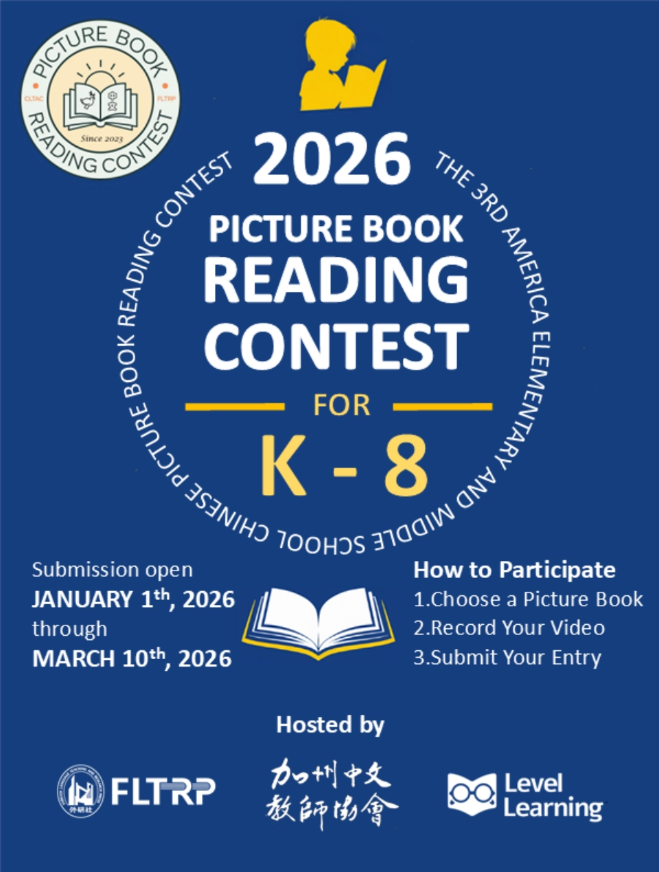 该活动旨在为美国K-8年级的中文学习者搭建一个展示语言能力、激发阅读兴趣、传播中华文化的多彩舞台。活动分为华裔组、沉浸式中文项目组、世界语言项目组、课后/周末学校组,以视频形式参加,进行中文绘本的讲读、讲述或表演。征集结束后,主办方将组织行业专家进行交叉匿名评审,并于4月初公布获奖名单。