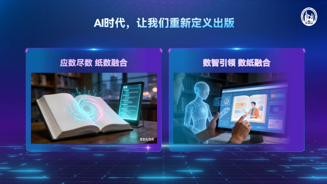 正是在这样的背景下,基于在“十四五”期间“应数尽数,纸数融合”发展的基础,外研社将“十五五”规划的发展理念升级为“数智引领,数纸融合”。从“纸数”到“数纸”,一字之序的变化背后是发展逻辑的重塑:数字优先、智能驱动,纸质不再是默认的中心,外研社的数智化从“补齐短板”迈入“构筑长板”的深化发展阶段。