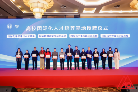 外研社与众多高校深度合作,在国际化课程建设、国际化测评赛事、国际化学生实践和国际化师资培养方面取得的成效显著。论坛上,重庆人文科技学院、国防科技大学、河北工程大学、河北经贸大学、昆明理工大学、昆明文理学院、曲阜师范大学、山西大学、上海外国语大学贤达经济人文学院、太原理工大学、浙江财经大学、郑州大学、郑州经贸学院、中国地质大学(北京)等14所高校因特色鲜明、卓有成效的办学举措,被授予“高校国际化人才培养基地”称号。王芳社长为基地院校授牌。