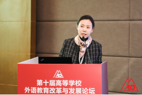 秦中书副教授介绍了重庆人文科技学院的人才培养创新举措。学校推动英语专业转型,引入外研社《跨境电商交际英语》等课程,增设跨境电商微专业,着力培养学生英语语言表达、跨文化商务协作与跨境平台运营三大能力,夯实学生职业素养、创新精神和实践能力,通过线上线下混合教学与“校内外双导师”的机制,构建覆盖“课程教学—平台实训—学科竞赛—企业实践—就业对接”的培养体系。