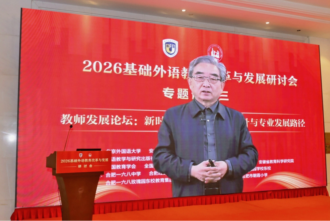 2026年4月16日,“2026基础外语教育改革与发展研讨会”在合肥顺利开幕。本次大会下设8个专题论坛,16日下午,40余位高校教授、知名中小学校长、优秀教研员及一线教师围绕“新时代基础外语教材建设与课堂转化路径”“数智时代阅读育人的创新路径”“新时代外语教师素养提升与专业发展路径”“新时代基础教育评价改革的转型探索和创新发展”“数智时代智慧外语教育的创新与实践路径”“共探国际理解教育新体系”“文化意识的准确理解与教学实践”“解锁外语融合课程新范式”八大专题,聚焦当下,探讨新时代基础外语高质量发展和高素质国际化人才培养的理论创新与实践经验。