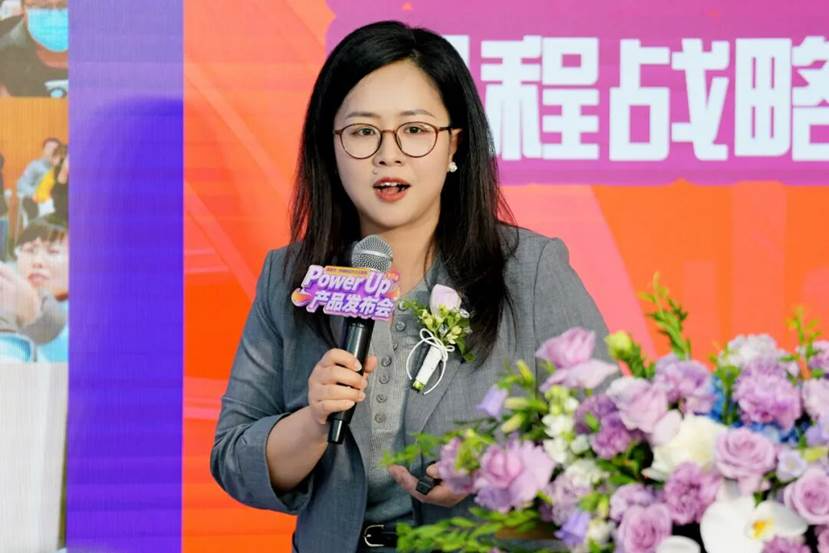 新东方儿童素养智学推广管理中心总经理助理张莹就双方合作课程体系进行详细介绍。她阐释了新东方如何将外研社的优质教程资源有机融入线下素养课程体系,形成优势互补的教学闭环。她介绍,该课程体系以《外研新动力少儿英语Power Up(第2版)》和《外研思辨英语青少版》为核心支撑,依托专业师资与全国统一教研,以权威课程与优质教学,为少年儿童提供高品质英语素养教育。